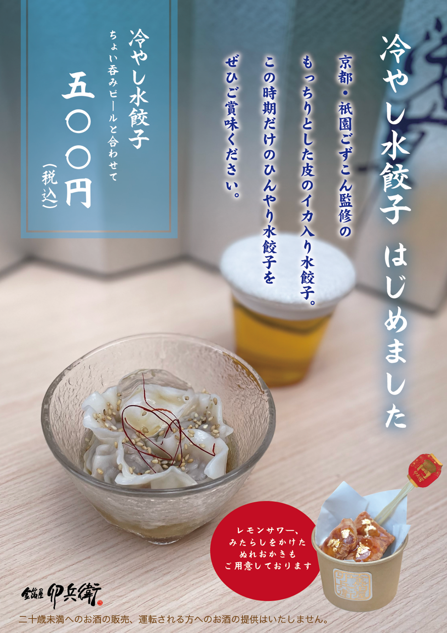 京都・祇園で人気の料理店「祇園ごずこん」監修の新メニュー「冷やし水餃子」の販売を9月6日(金)より開始いたします。